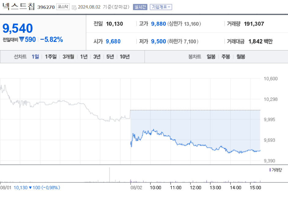 넥스트칩 주가 차트