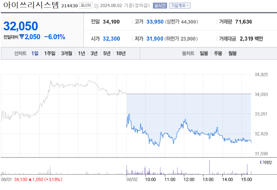 아이쓰리시스템 주가 차트