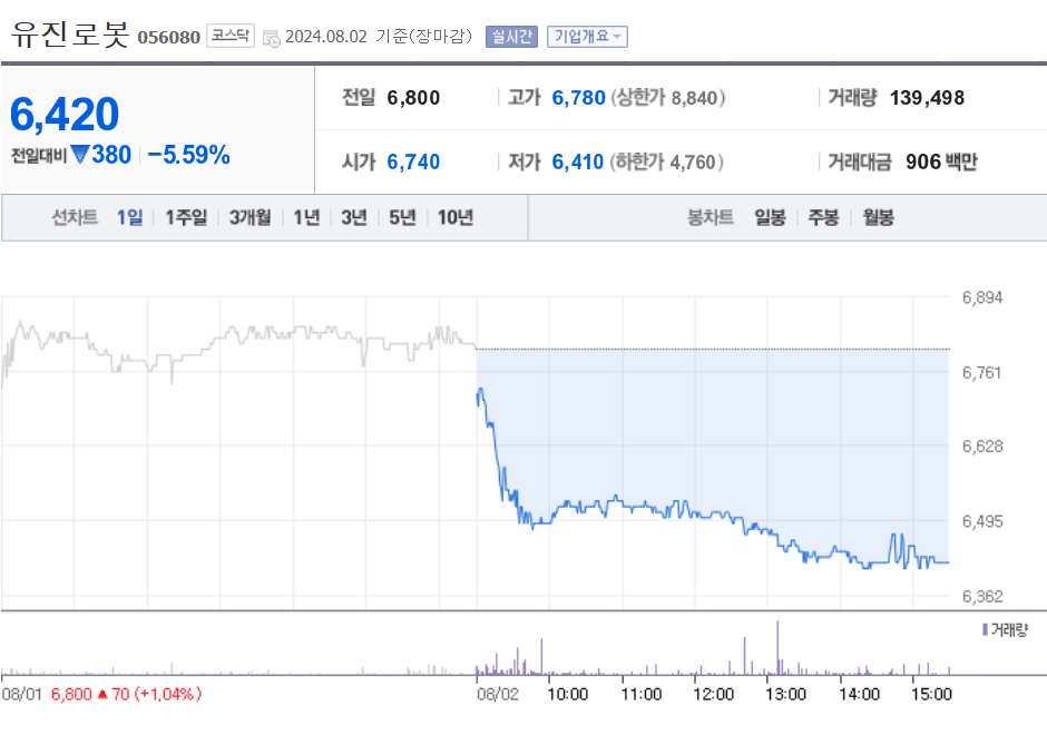 유진로봇 주가 차트