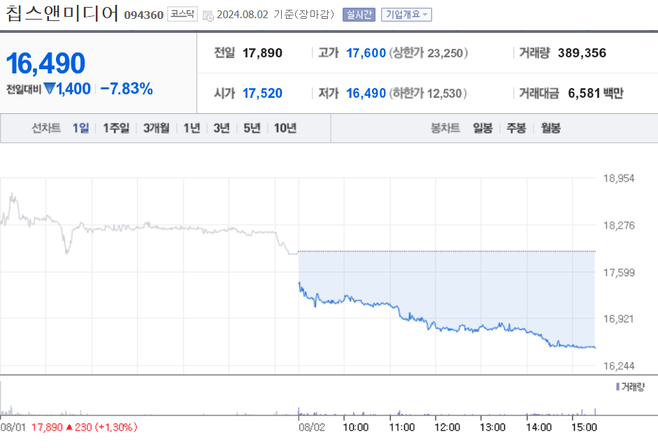 칩스앤미디어 주가 차트