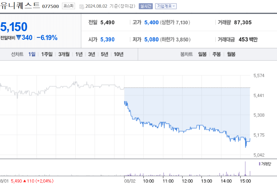 유니퀘스트 주가 차트