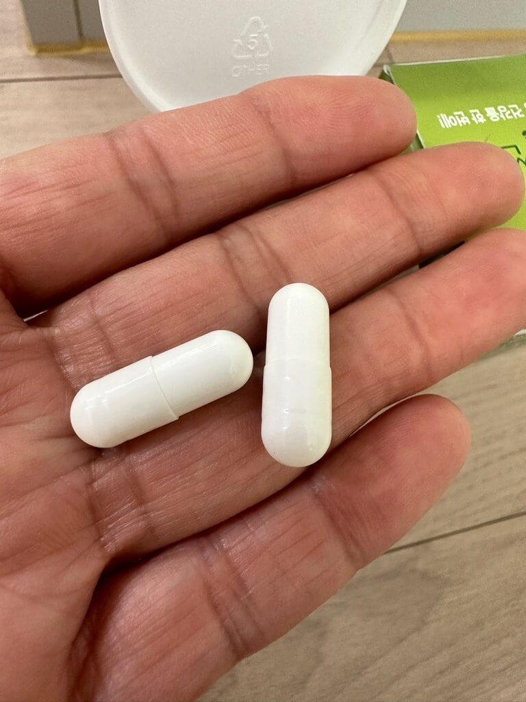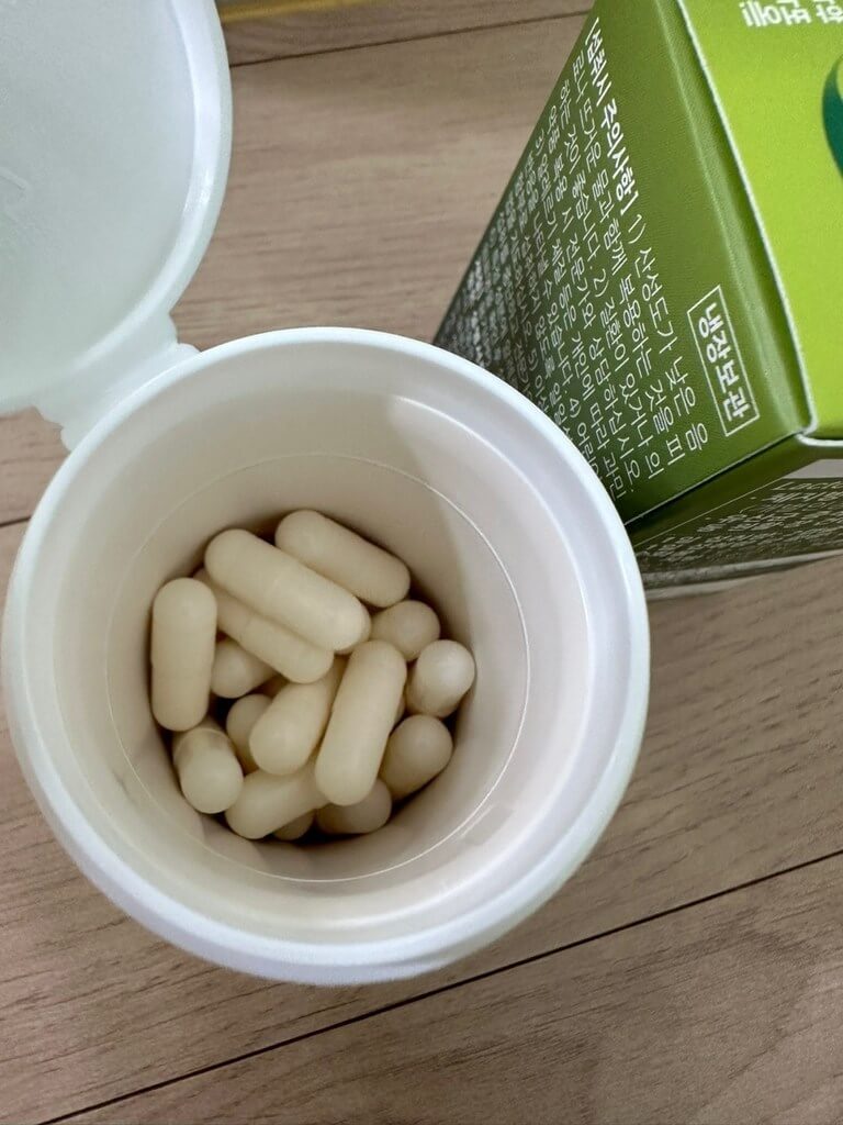 하루에 2캡슐 먹는 제품이라, 저는 아침에 공복 상태로 한 번에 먹어요.